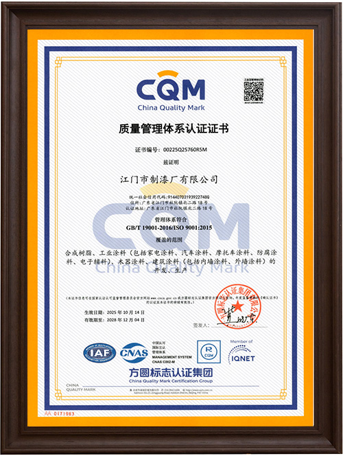 聚氨酯清漆中国国家强制性产品认证证书