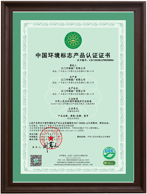 内墙底漆中国环境标志产品认证证书